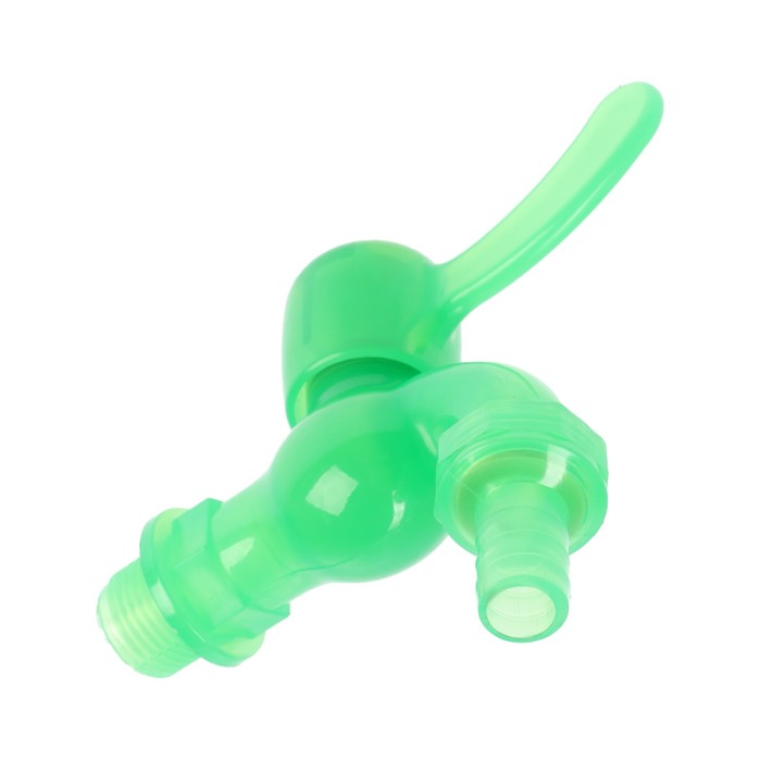 Кран водоразборный ZEIN, 1/2", со штуцером, с плоской ручкой, PP, зеленый