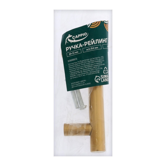 Ручка-рейлинг CAPPIO FRIDA, нержавеющая сталь, d=12 мм, м/о 64 мм, цвет золото